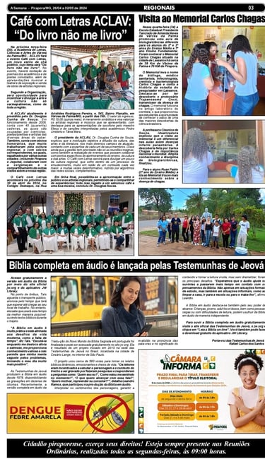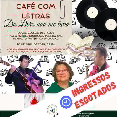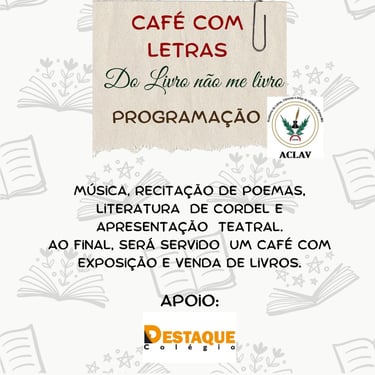 No dia 30 de abril de 2024, às 19h, no Colégio Destaque, Município de Várzea da Palma/MG, foi realizado o Café com Letras ACLAV, cujo tema é "Do Livro não me livro", a ser realizado no próximo